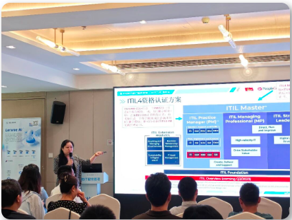 作为PeopleCert商业IT大中华区经理,深圳活动特邀嘉宾周丹老师首先向大家介绍了PeopleCert的全球影响力和ITIL认证的市场价值。她指出,82%的CEO目前有数字化转型计划,84%预计数字化举措将大幅提高利润率,而85%的世界500强企业都在使用ITIL。这些数据充分说明了IT服务管理在数字化转型中的重要地位。