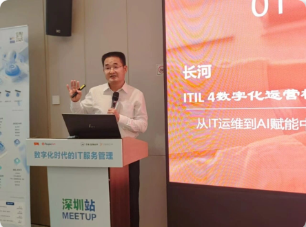 第一个重磅分享环节由ITIL先锋论坛创始人、中国区首位"ITIL产品大使"长河老师带来,主题是《ITIL4数字化运营模式:从IT运维、IT运营部门,向AI赋能中心的华丽转身》。