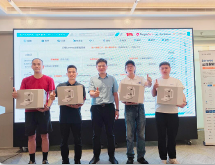 王老师与中奖者合影,奖品是PeopleCert赞助的小风扇