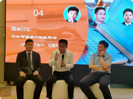 这次新增加的圆桌研讨环节到来了!长河老师、丁振兴老师、王晨光老师三位行业专家围坐一桌,就"AI如何拯救IT运维职场"这一热门话题与来宾展开深入讨论。